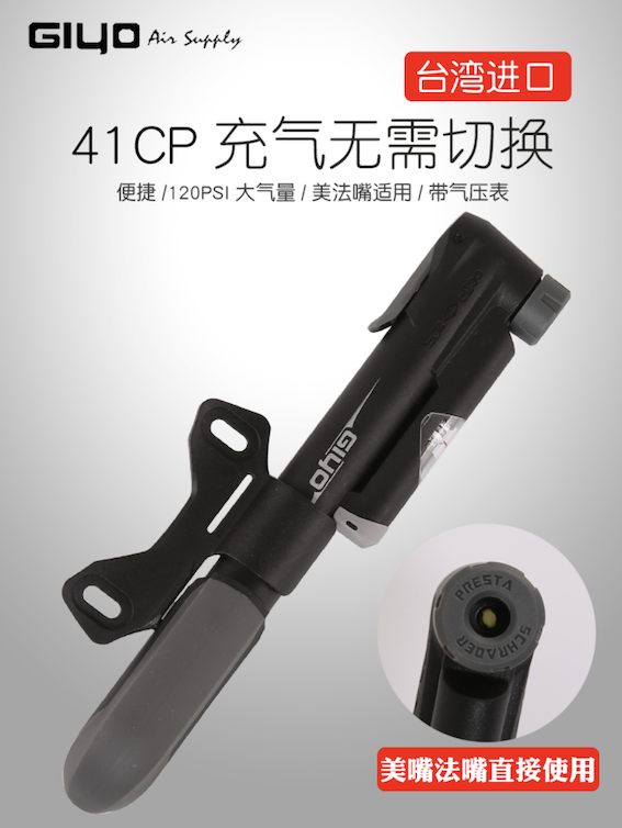 台湾集优GIYO高压迷你便携山地车公路自行车打气筒带压力表美法嘴:¥ 38.00