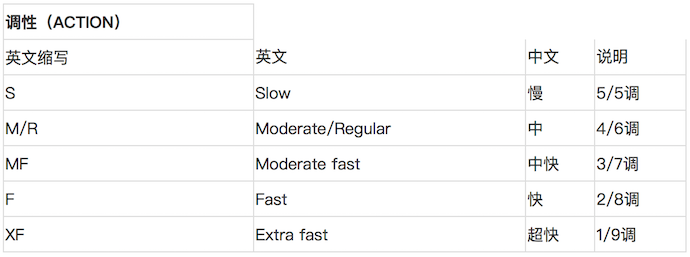 很多路亚爱好者在路亚竿调性的理解上存在着误区,大家通常认为Bass竿的硬度如M、MH等就是鱼竿的调性,其实不然。鱼竿的调性代表鱼竿曲线变化,从S到F表示鱼竿在适当受力后的弯曲点越来越靠近竿梢。