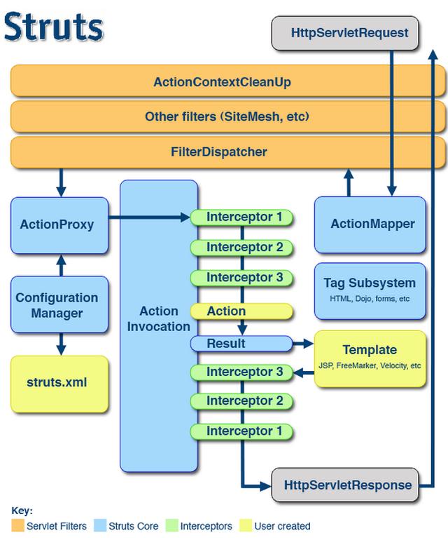 - 3、接着FilterDispatcher被调用,FilterDispatcher询问ActionMapper来决定这个请求是否需要调用某个Action;