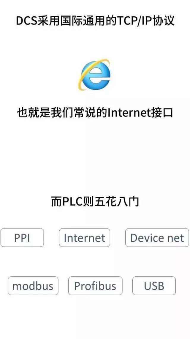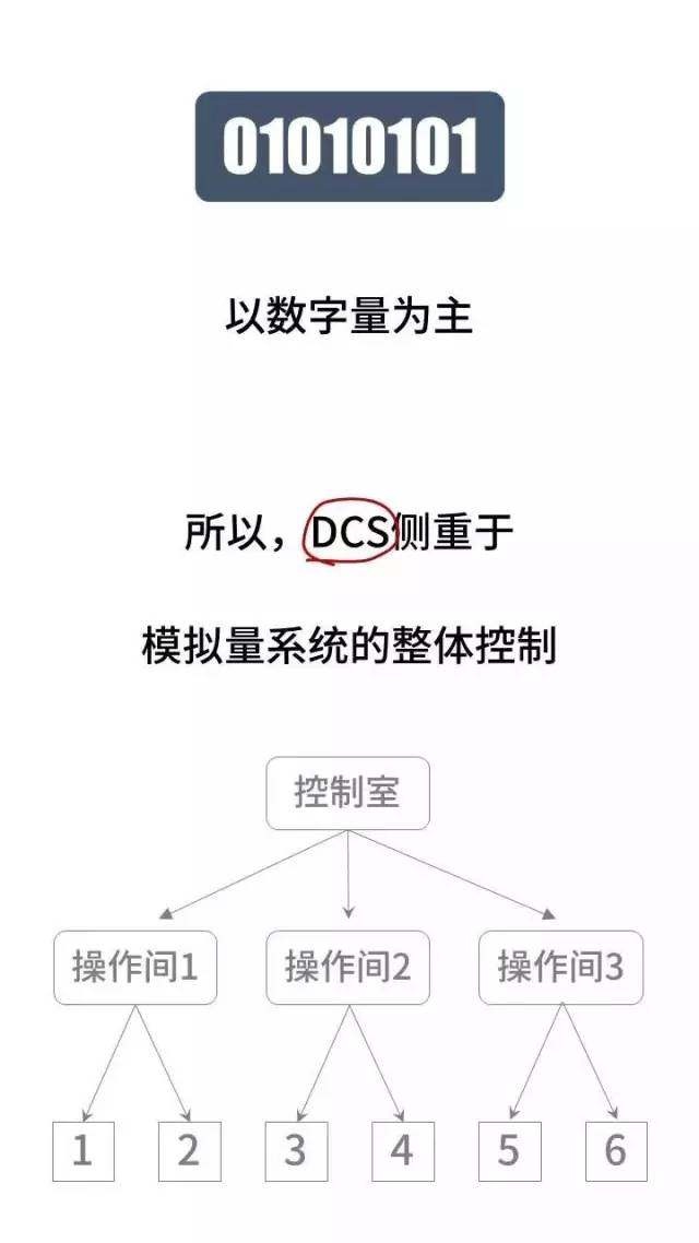 DCS从传统的仪表盘监控系统发展而来。因此,DCS从先天性来说较侧重于仪表的控制,比如YOKOGAWACS3000,DCS系统甚至没有PID数量的限制(PID,比例微分积分算法,是调节阀、变频器闭环控制的标准算法,通常PID的数量决定了可以使用的调节阀数量)。