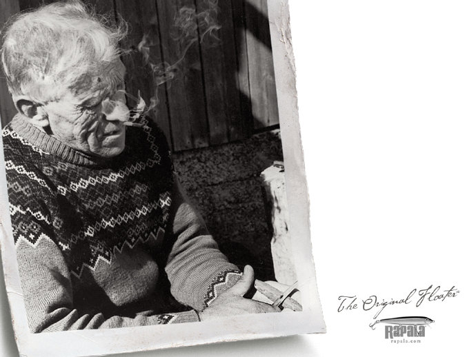 Rapala可以算是位渔夫,早年的他十分穷苦,七个孩子和妻子Elma就生活在十三尺见方大小的木屋,他必须经年的在距离赫尔新基北方二小时车程的湖泊Vaaksy里辛苦垂钓以维持生计。他整日滑着木船,借着近百个钩着活饵的钩组等待鱼只上钩,有时候两天渔获可达六百磅的鳟鱼,有时候则一无所获。在苦等鱼上钩时,他很自然的花上无数小时的时间,观察属于水里世界生存的竞争定律。他发现在湖中一种叫鲦鱼(minnow)的小鱼常常成为掠夺性强的鱼如鳟鱼,梭鱼的食物。而这种掠食行为并非没有一定的行为模式,而是会挑上层小鱼群中特别的几只。原来,属于孱弱的鱼体,它们的游姿常和其它鱼不同,也因此成为被攻击的对象鱼。在长久仔细的观察下,Rapala居然可以预测一群鱼中究竟谁将是下一个倒霉鬼。